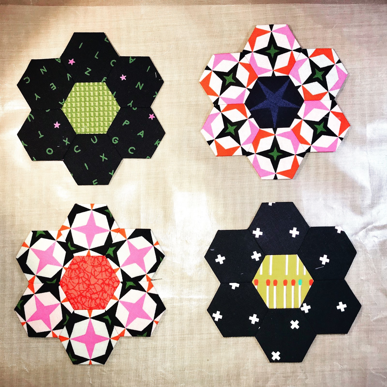 some more hexie flowers.
